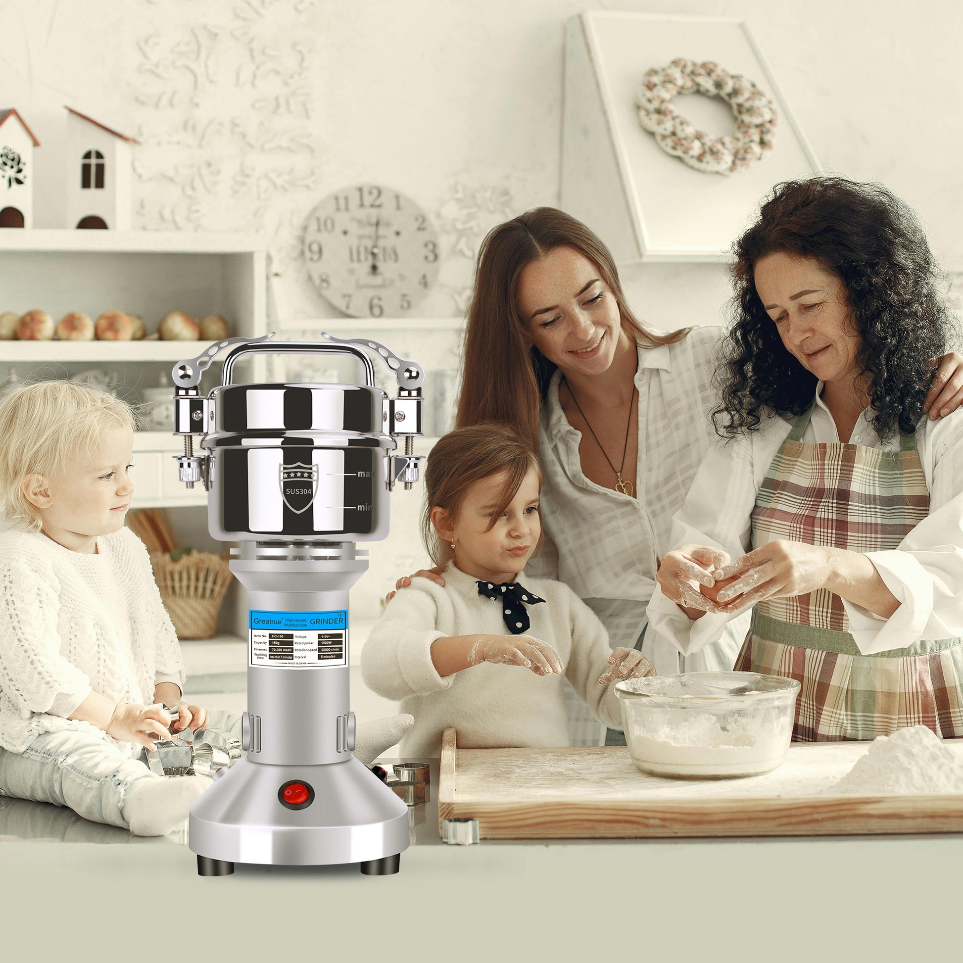 - MULTIFUNCTIONAL GRINDER: Easily grinds a variety of dry substances, including grains (wheat, corn, rice, soybeans), spices (chili, cinnamon, bay leaf, pepper), herbs (dried basil, mint, parsley) and coffee beans. Widely used in kitchens, restaurants, supermarkets, food processing plants, etc
